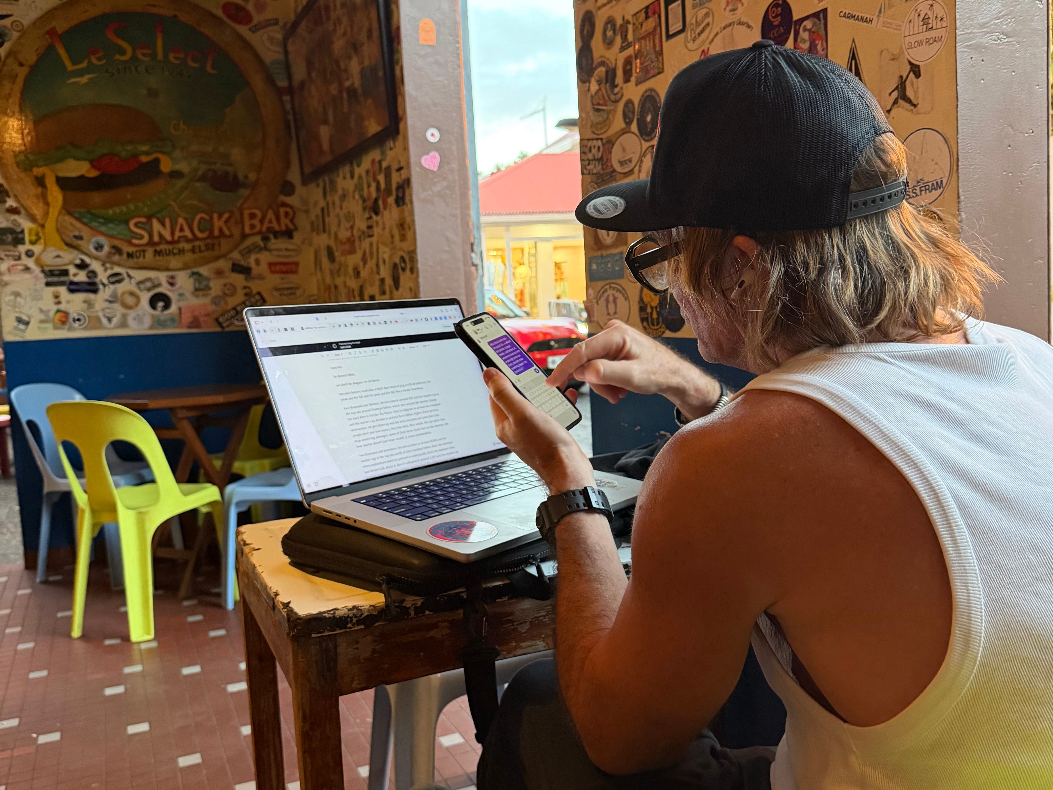 look at the picture. thatβs me writing it. magnify it and youβll see the pages. the mess. the architecture. stories within stories. hinge on my telephone. absurdity, yes. characters. theatre. but also discipline. craft. lessons buried in laughter. if you read closely, you will strengthen your instincts.